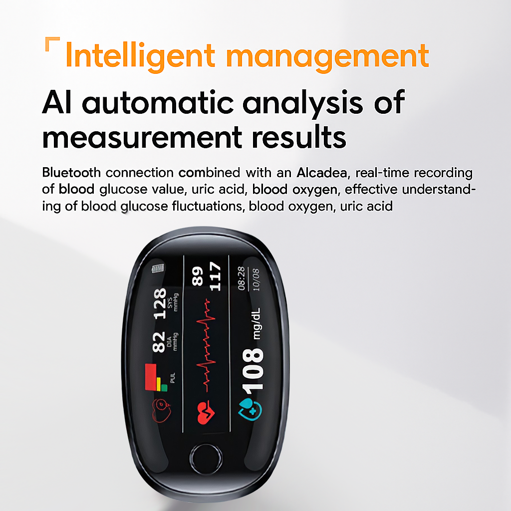 The Newyuo™ MULTI-USE Non-Invasive Laser Meter features a powerful chip with intelligent algorithms for quick, precise measurements. Its low-power MCU chip and advanced "LAMBERTBEER" algorithm capture signals rapidly, ensuring accurate results. Using cutting-edge photonic chip technology, it measures blood glucose, blood pressure, blood lipids, and more. This multifunctional device provides comprehensive health tracking, enabling users to monitor their health with confidence.